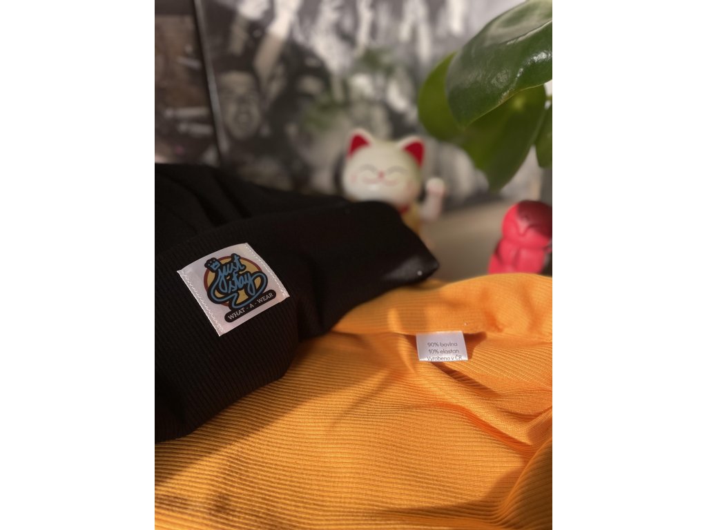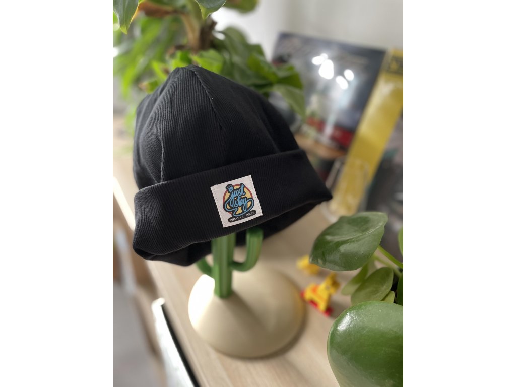 Bavlněný kulich s nášivkou a etiketou What-A-Wear. Tvoje hlava už bude navždy v teple! Můžeš ho nosit ohrnutý nebo si ho nasaď na hlavu jako pytel od brambor. V druhém případě ti už na dready sněžit nebude!